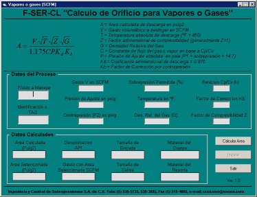PANTALLA DEL CALCULO DE ORIFICIO PARA VAPORES O GASES