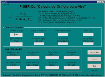 ![]() PANTALLA DEL CALCULO DE ORIFICIO PARA AIRE